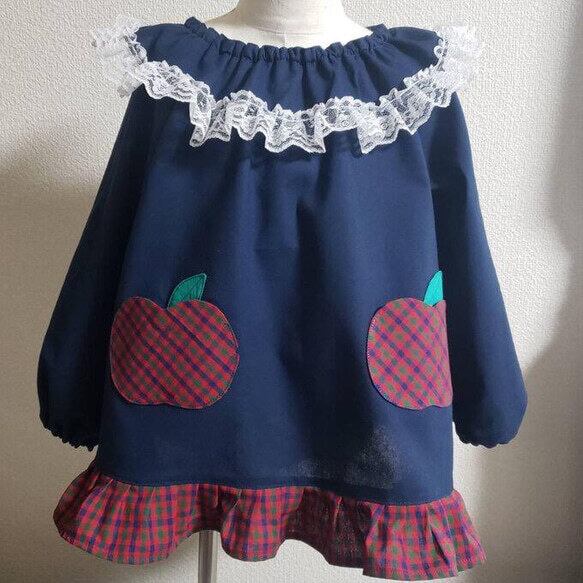 キッズ 子供 スモック スモッグ 半袖 長袖 保育園 幼稚園 小学校 園児 幼児 小学生 学童 給食 絵画 書道 工作 図工 粘土 水遊び 遊び着 クッキング 料理教室 食事エプロン 入園 入学 通園 通学 新学期 オーダー オーダーメイド サイズオーダー オーダースモック サイズ選べる ファミリア チェック リンゴ 林檎 Apple フルーツモチーフ 果物 タータンチェック りんご フルーツ 果物 アップル タータンチェック