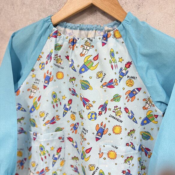 【即納120/受注80~150】宇宙ロケット ブルー 長袖スモック