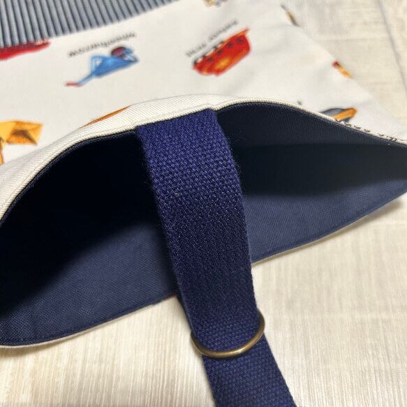 【即納】働く車 ワーキングカー ホワイト ヒッコリーデニム 上履き入れ シューズ袋 裏地11号帆布