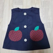 【受注80~160】りんごポケット レッド チェック ネイビー 前ボタン 袖なしスモック 着丈延長可