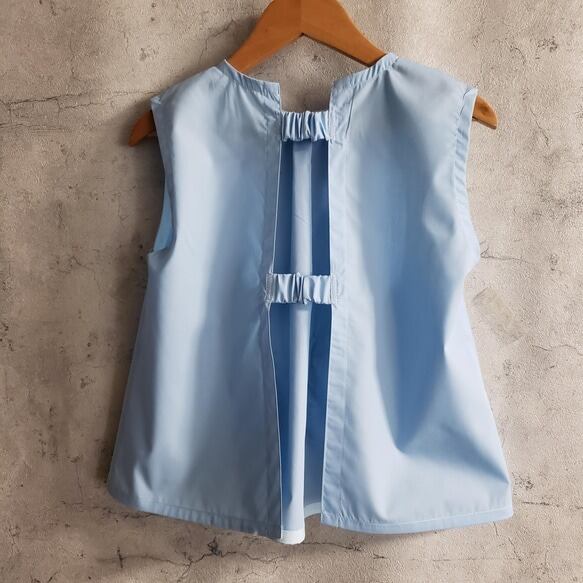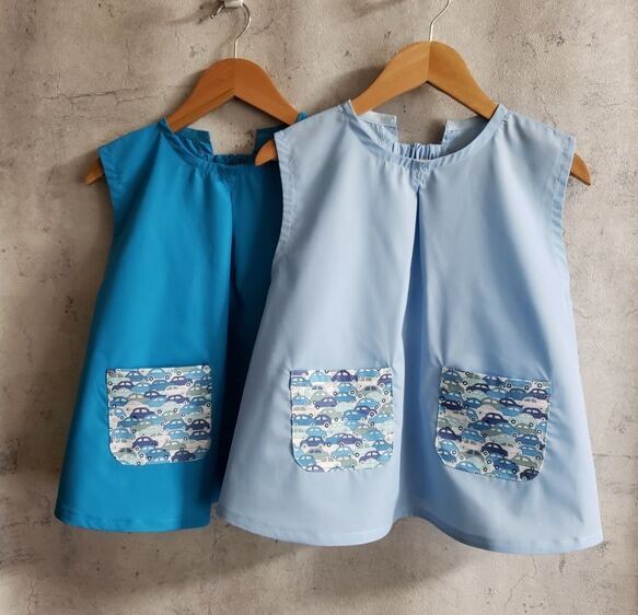 【受注80〜160】リバティ カーズ 綿ポリ ベビーサックス 後ろあき 袖なしスモック